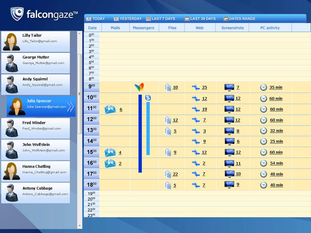 e working day. The DLP system helps to get information about the websites, visited by the employee, the time, spent on these websites or any messages sent.